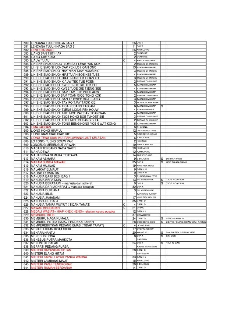 Rahasia ciok kwan im (da sha mo) 3. Dec 28, 2019 · download cersil mandarin karya liang ie shen (liang yu sheng) download cersil mandarin karya ni kuang (ni chong) download cersil mandarin karya sd liong. Maling romantis (xue hai piao xiang) 2. See tok ouw yang hong tay toan.pdf download. Download cersil mandarin karya tjan i.d (tjan ing djoe) download cersil mandarin karya wen rui an. Enter the password to open this pdf file. Download cersil mandarin karya stevanus s.p. Daftar judul cerita silat mandarin lengkap karya khu lung seri pendekar harum (chu liu xiang xu ji) 1.